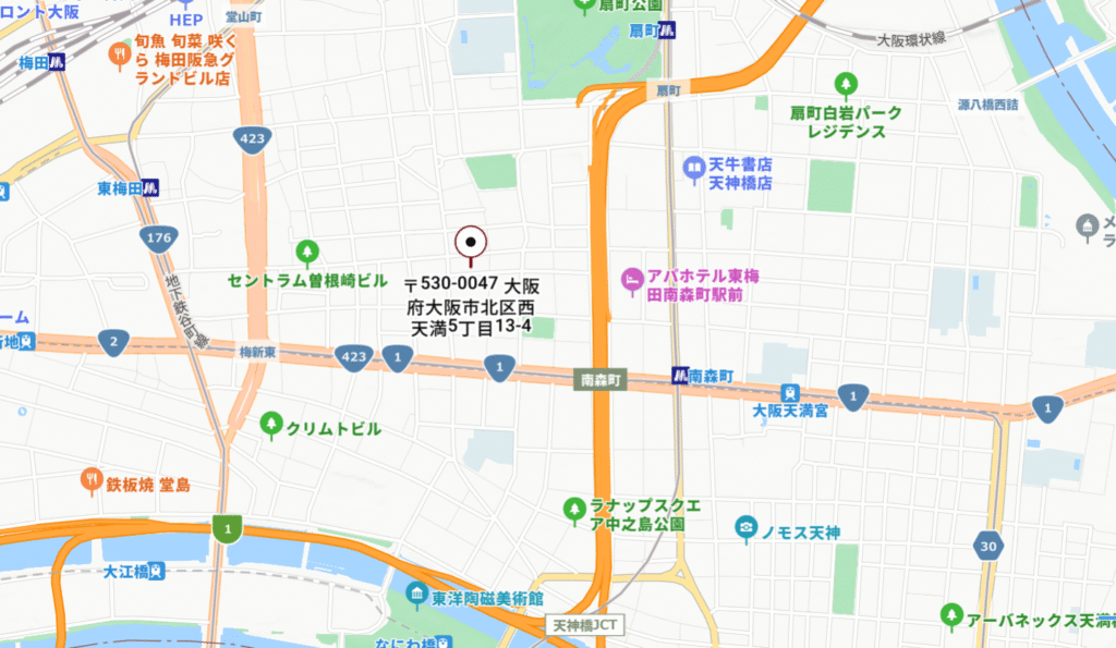 住所:〒530-0047 大阪府大阪市北区西天満5丁目13−4 2F