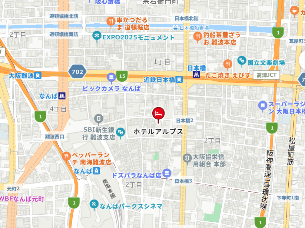 住所:大阪市中央区なんば千日前ホテルアルプス周辺