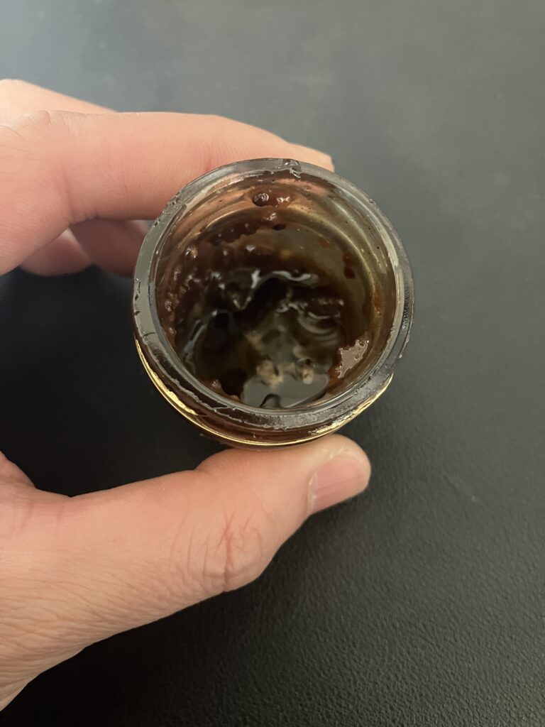見た目は黒っぽいペースト状で、少し粘度があります。