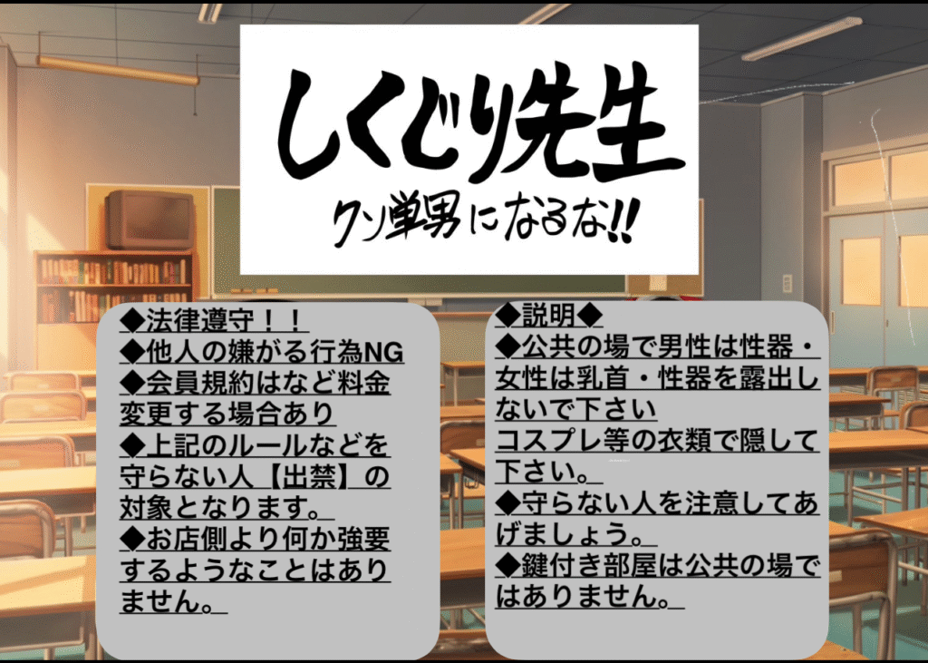 男性 入会金:5,000円 入場料:6,000円 女性 入会金:1,000円(BBS書き込みで無料) 入場料:1,000円(BBS書き込みで無料) カップル 入会金:5,000円(2名料金) 入場料:4,000円(2名料金) |