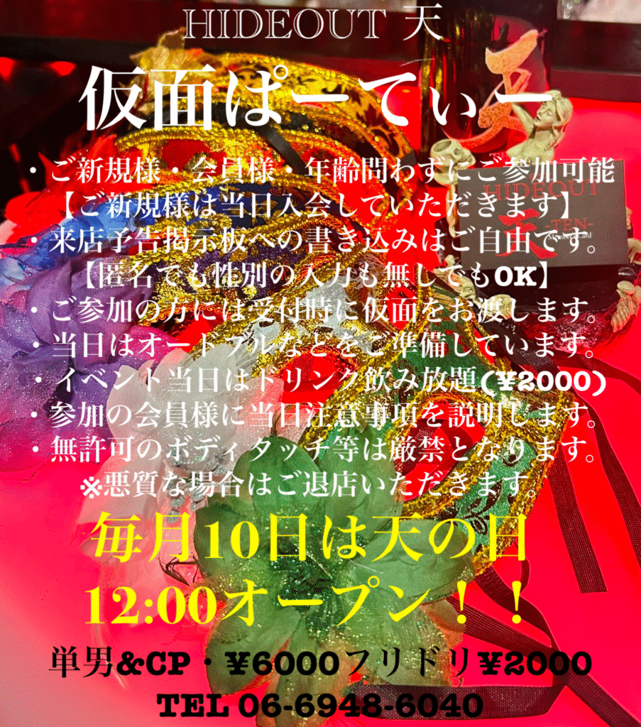 ハイドアウト天はレッドドラゴングループの一つで、4店舗目に開業したハプニングバーです。